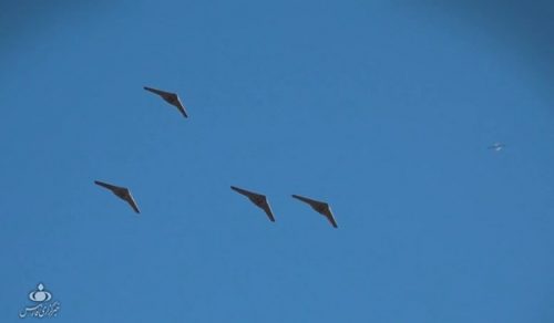 قامت الطائرات المسيرة من طراز شاهد 181 التابعة لحرس الثورة الاسلامية، يوم الجمعة، بالتحليق فوق منطقة مناورات الرسول الاعظم في نسختها الخامسة عشرة.