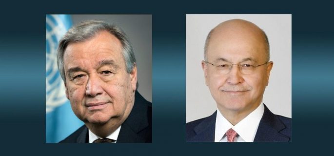 اكد رئيس الجمهورية برهم صالح ضرورة عمل الامم المتحدة مع مفوضية الانتخابات لتأمين الرقابة الأممية، فيما اشار الامين العام للامم المتحدة أنطونيو غوتيرش دعمه لجهود السلطات العراقية في تعزيز الأمن والاستقرار وترسيخ سيادته.