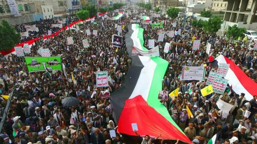 وفي هذا السياق، قال قائد حركة “أنصار الله”، السيد “عبد الملك بدر الدين الحوثي” في خطابه يوم الجمعة الماضي، إن “الشعب اليمني سباق في حمل راية القدس والقضية الفلسطينية”، مشيراً إلى “عظمة الموقف الذي يتخذه الشعب اليمني في مناصرة القضية الفلسطينية، والتي تزعج العدو الصهيوني ويعبر عن قلقه من الشعب اليمني في مناسبات مختلفة”. ولقد أكد بيان المسيرة الكبرى التي خرجت في العاصمة صنعاء في يوم القدس العالمي أن العدو الإسرائيلي يمثل خطرا حقيقيا على الأمة وتهديدا جديا وفعليا لأمن واستقرار المنطقة، وهو ما يتطلب من شعوبها النهوض بالمسؤولية ومقارعة الهيمنة .. مؤكدا أن موقف الشعب اليمني تجاه القضية الفلسطينية نابع من هويته الإيمانية وأصالته وهو مستمر على موقفه في مناصرة الفلسطينيين والسعي لتحرير فلسطين والمقدسات والأراضي العربية المحتلة.
