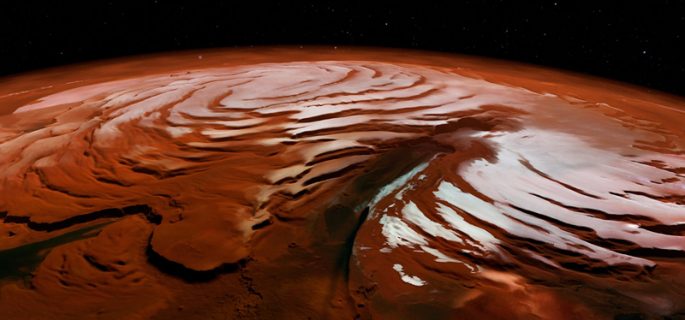 وصوّر المشهد بواسطة مركبة استكشاف المريخ المدارية التابعة لوكالة ناسا في وقت سابق من هذا العام، وتمت معالجة المشهد بما يسمى “اللون الزائف”، وتحويل الأطوال الموجية المتميزة للضوء إلى لوحات مذهلة لا يسعنا إلا التمييز بينها.