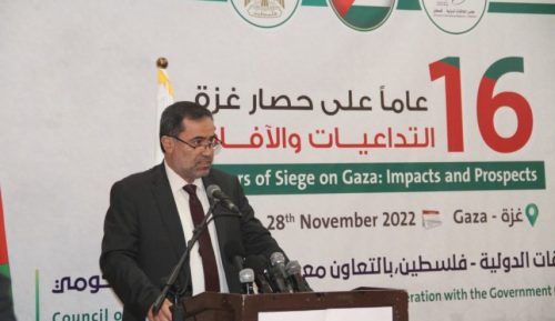 ويشارك بالمؤتمر شخصيات فلسطينية ممثلة عن القطاعين الحكومي والمجتمع المدني الفلسطيني وكذلك شخصيات ممثلة للمجتمع الدولي؛ للتطرق لتداعيات الحصار المفروض على القطاع. المتحدث باسم حركة حماس، عبد اللطيف القانوع، قال في كلمته خلال المؤتمر، إنّ “الحصار المفروض على غزة منذ 16 عامًا جريمة إنسانية بحق الشعب الفلسطيني، ووصمة عار على جبين العالم الذي يتعامل بإزدواجية في القضايا الدولية، وشعبنا لن يقبل باستمراره”.
