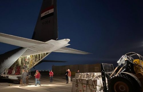 وقال مصدر أن “الجسر الجوي بين العراق وسوريا انطلق عبر أول طائرتين للقوة الجوية العراقية محملتين بالمواد الاغاثية والطبية والغذائية”.
