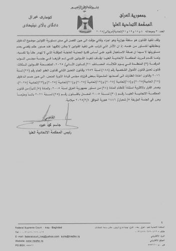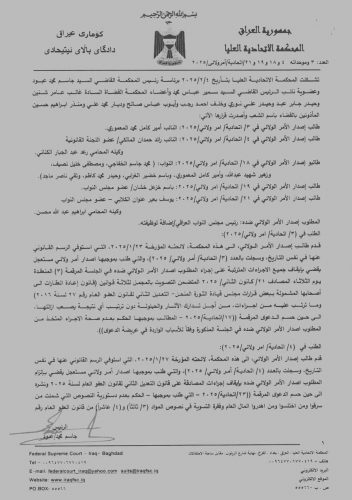 الاتحادية تقرر ايقاف قوانين العفو العام والأحوال الشخصية والعقارات بأمر ولائي