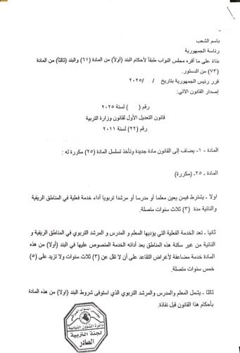 نص تعديل قانون التربية قبل مناقشته تحت قبة البرلمان