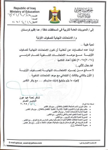 التربية تقرر السماح بإجراء الامتحانات النهائية للصفوف الأولية مع موعد الامتحانات الشفوية