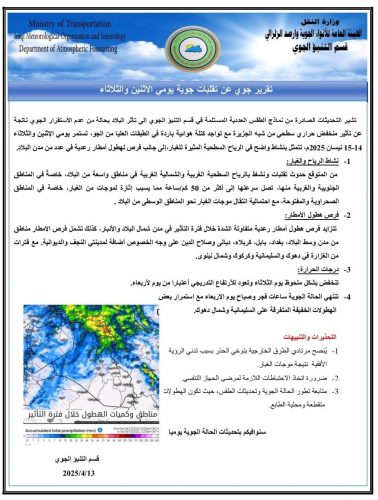 الانواء الجوية تصدر تقريرا هاما بشأن يوم غد