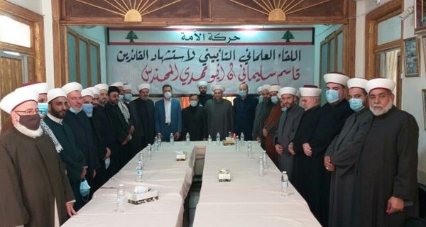 نظم علماء دين من حركة التوحيد الإسلامي، وحركة حماس، وحركة الجهاد الإسلامي، والهيئة الإسلامية الفلسطينية والهيئة السنية لنصرة المقاومة، والمنتدى الإسلامي، وجمعية نور اليقين، وجمعية ألفة، وتجمع علماء عكار وحركة الأمة، لقاء علمائيا تأبينيا، في المركز الرئيسي لحركة الأمة في بيروت، “لمناسبة الذكرى السنوية الأولى لاستشهاد القائدين الفريق قاسم سليماني والحاج أبو مهدي المهندس”. بحضور ممثل السفير الإيراني في لبنان المستشار السياسي علي أصغري.
