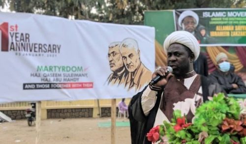 احيا انصار الحركة الاسلامية في نيجيريا الذكرى السنوية الاولى لاستشهاد القائدين قاسم سليماني وابو مهدي المهندس ورفاقهما الشهداء.
