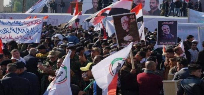 تظاهر أمس الأحد، 3 كانون الثاني 2021، في ساحة التحرير ببغداد، عشرات الآلاف من العراقيين في مظاهرة “الاستشهاد والسيادة” الكبيرة؛ لإحياء الذكرى الأولى لاستشهاد اللواء “قاسم سليماني” قائد قوة القدس بالحرس الثوري الإسلامي و”أبو مهدي المهندس” نائب رئيس هيئة الحشد الشعبي العراقي ورفاقهما.
