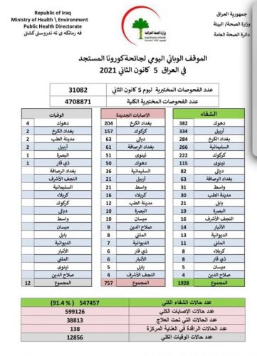 بالجدول.. شفاء 1928 شخصا من كورونا خلال 24 ساعة في العراق