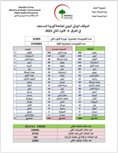 بالجدول.. الصحة تعلن شفاء 1889 حالة جديدة من كورونا