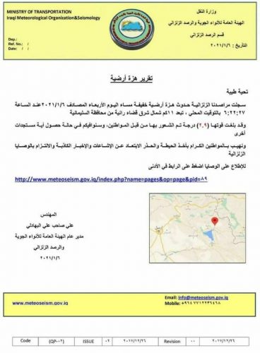 هزة أرضية تضرب شمال شرق قضاء رانية في السليمانية
