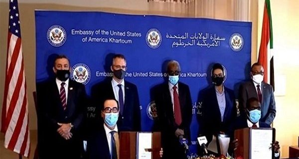 أعلنت الحكومة السودانية اليوم الأربعاء رسميا عن توقيعها إعلان “اتفاقيات إبراهيم” خلال زيارة وزير الخزانة الأميركي ستيفن منوشين إلى الخرطوم.