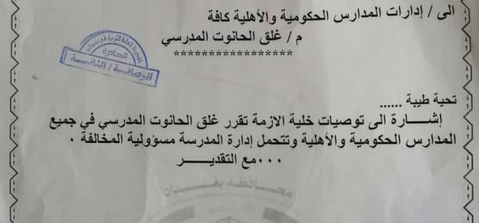 بالوثيقة.. التربية تقرر غلق الحانوت في جميع المدارس