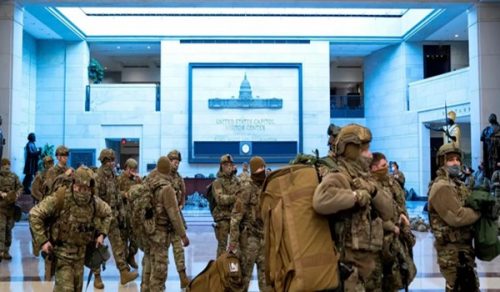 في مشهد لم تألفه اميركا من قبل، انتشر العشرات من عناصر الحرس الوطني في أروقة مبنى الكابيتول، بعد ورود تحذيرات من إمكانية ارتكاب أعمال عنف جديدة من قبل أنصار ترامب، وتزامناً مع توقيع مجلس النواب قرار مساءلة الرئيس الذي يعيش أيامه الأخيرة في البيت الأبيض.