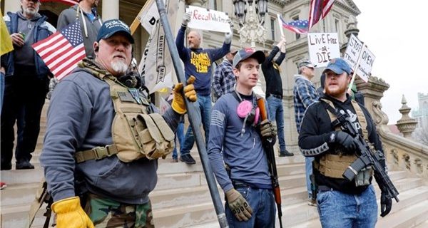 تظاهر عدد من أنصار الرئيس الأميركي المنتهية ولايته دونالد ترامب أمام مبنى الكونغرس في ولاية ميشيغن مدججين بأسلحتهم وعتادهم العسكري.