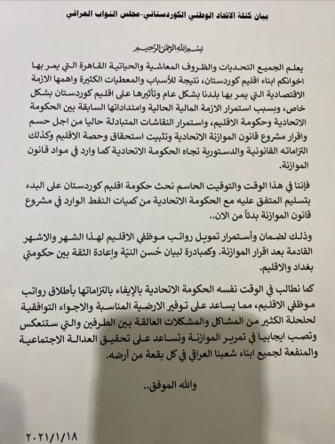 بالوثيقة.. الاتحاد يطالب اربيل بتسليم كميات النفط المتفق عليها لبغداد “فورا”