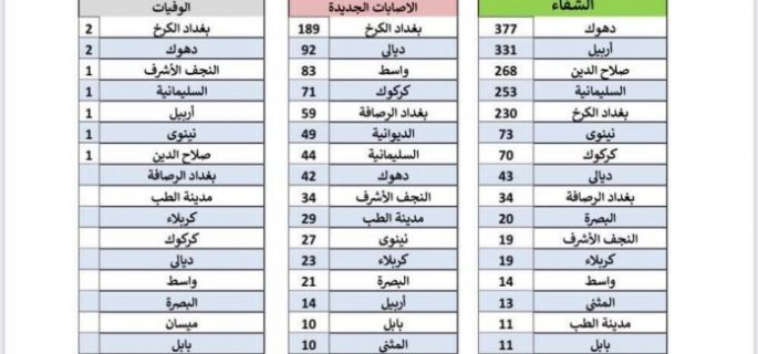 بالجدول .. 1813 حالة شفاء من كورونا في العراق خلال 24 ساعة