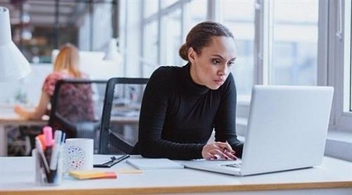 في حين أوضحت : من المهم أن تبقي الكمبيوتر المحمول أمامك على ارتفاع نظرك لتجنب أي إجهاد على رقبتك.