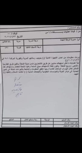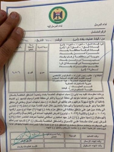 بالوثيقة ….تحذيرات أمنية من إستهداف العاصمة بغداد بانتحاريين