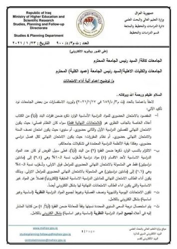 بالوثيقة .. التعليم العالي رسمية تحدد شكل الامتحانات اليومية والشهرية