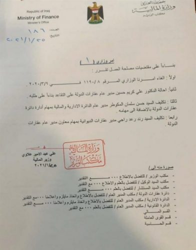 بالوثيقة.. وزير المالية يجري تغييرات في دائرة عقارات الدولة