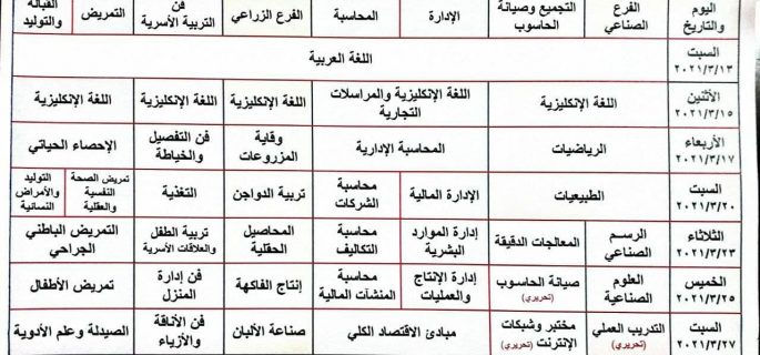 بالوثيقة.. جدول الامتحانات المهنية للفروع والتخصصات للعام الدراسي (2020-2021)