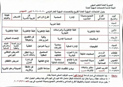 بالوثيقة.. جدول الامتحانات المهنية للفروع والتخصصات للعام الدراسي (2020-2021)