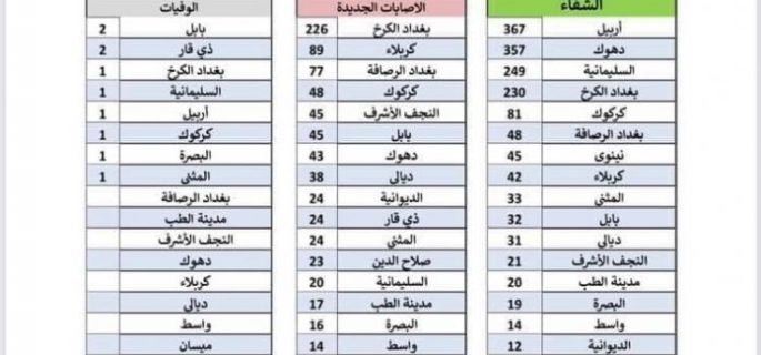 بالجدول..العراق يسجل 1625 حالة شفاء جديدة من كورونا