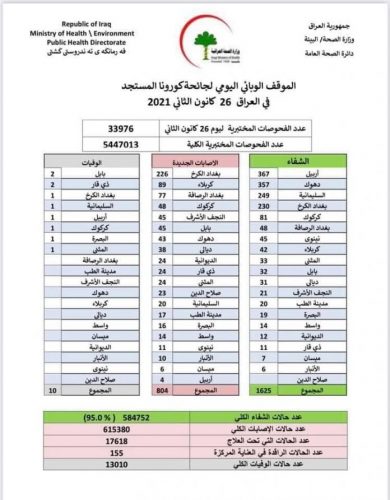 بالجدول..العراق يسجل 1625 حالة شفاء جديدة من كورونا
