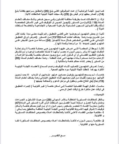 بالوثائق.. محضر لجنة نيابية بشأن الموقوفين وفق “امر” مكافحة الفساد