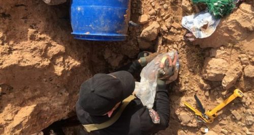 أعلن الحشد الشعبي، الخميس، عن العثور على مواد متفجرة وأحزمة ناسفة وعبوات ناسفة بأنفاق غرب الانبار.
