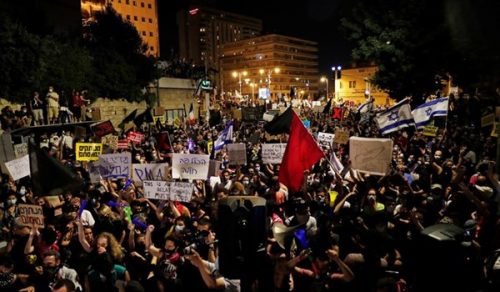 تحدثت وسائل إعلام إسرائيلية عن استمرار الاحتجاجات المناهضة لحكومة بنيامين نتنياهو، للأسبوع 32 على التوالي، حيث يطالب المتظاهرون باستقالة نتنياهو ويدينون “تعامل الحكومة مع جائحة فيروس كورونا”.