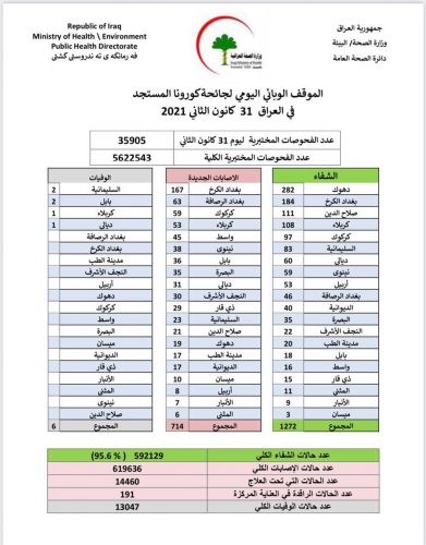الصحة تسجل 714 إصابة جديدة و6 وفيات اليوم