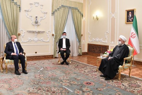 وتباحث حسين مع الرئيس روحاني، وجرى خلال اللقاء إستعراض مسار العلاقات بين البلدين وسُبُل دعمها على الصُعُد كافة، وتذليل المعوقات التي تعترض المصالح المشتركة، وتمحور الحديث في هذا اللقاء على العلاقات الاقتصادية في المجالات المختلفة، منها الطاقة الكهربائية وفي المجالين التجاري والمصرفي، وتباحث الجانبان بما يعترض المعاملات المصرفية من صعوبات وكيفية إزالة تلك العقبات.