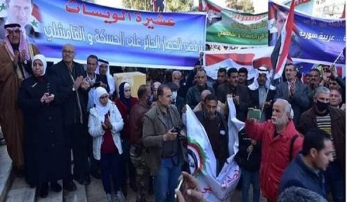 وكان ممثلو عشائر وقبائل في دير الزور نفذوا منذ أيام “وقفة احتجاجية طالبوا خلالها بفك الحصار المفروض على المدنيين فورا وطرد قوات الاحتلال الأمريكي والتركي من البلاد” حسب ما ذكرت وكالة “سانا” في حينه.انتهى