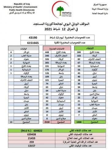 الصحة تسجل أكثر من 2500 حالة جديدة بكورونا