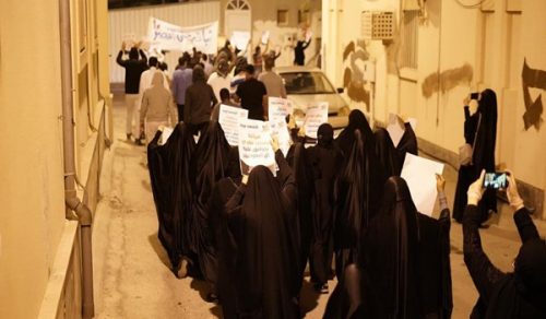 ونشر نشطاء على مواقع وسائل التواصل الاجتماعي اليوم صورا لتظاهرات رفع المشاركون فيها لافتات مناوئة للنظام في ضواحي العاصمة المنامة. وتم نشر قوات من شرطة مكافحة الشغب في مختلف الأحياء.