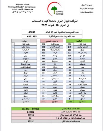 الصحة تسجل 3332 إصابة و7 وفيات جديدة بكورونا