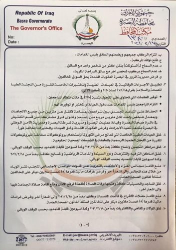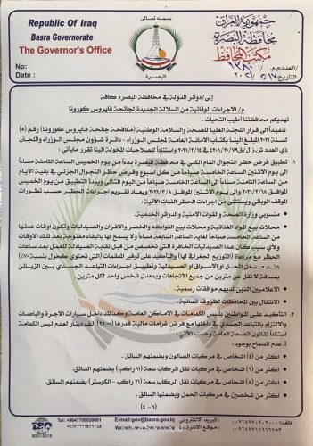 22 قراراً في وثيقة.. البصرة تشن الحرب على سلالة كورونا الجديدة