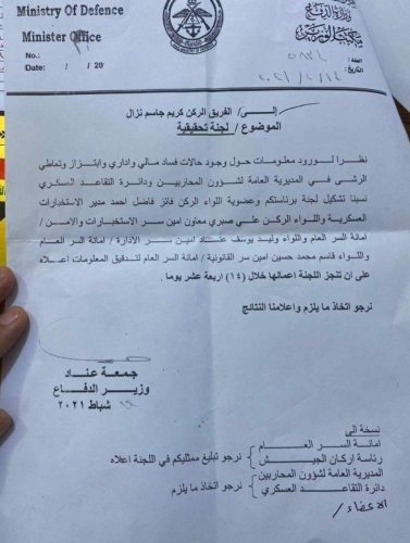 بالوثيقة ..التحقيق بفساد مالي وعمليات ابتزاز بإحدى مديريات وزارة الدفاع