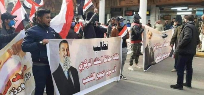 تظاهرة أمام البنك المركزي وسط بغداد تطالب بإعادة الدولار لسعره السابق