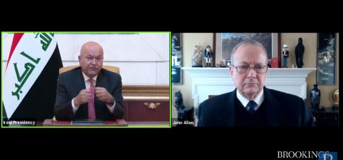 وقال صالح في كلمة خلال مؤتمر لمركز سياسة الشرق الأوسط في “معهد بروكينغز” الأميركي إن “مهمة النصر على تنظيم داعش لم تنجز بشكل كامل”، مشيرا إلى وجود “علامات على إعادة الحياة لداعش في الصحراء بالقرب من الموصل والأنبار وكركوك”.