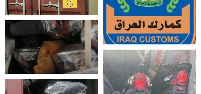 وذكرت الهيئة ، انها”ضبطت حاويتين تحتويان على دراجات نارية مخالفة في مركز كمرك ام قصر الشمالي”.