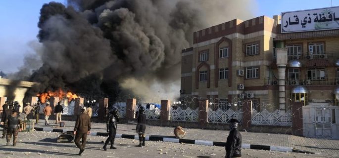 تجدد الصدامات بين المحتجين وقوات الامن امام مبنى محافظة ذي قار