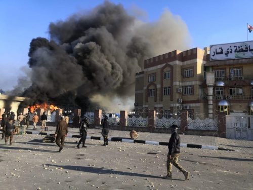 تجدد الصدامات بين المحتجين وقوات الامن امام مبنى محافظة ذي قار