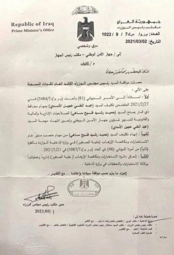بالوثيقة.. تكليف حميد فليح بديلاً لعبد الغني الأسدي في ادارة جهاز الأمن الوطني