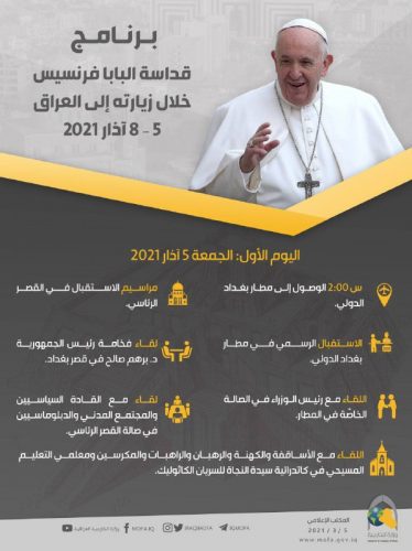 أجندة اليوم الأول لزيارة البابا فرنسيس إلى العراق