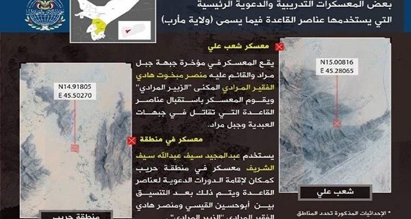 وقال التقرير “تمتلك “ولاية مأرب” عددا من المعسكرات وتتنوع بين معسكرات دعوية فقط، أو عسكرية ودعوية إذا كانت في مكان يعد حاضنة شعبية للتنظيم مثل قرية الخثلة الفقراء، مضيفا أن “معسكر شعب علي” يتواجد في جبهة جبل مراد ويقوم هذا المعسكر باستقبال عناصر “القاعدة” التي ستقاتل مع قوات المرتزقة في جبهتي العبدية وجبل مراد”.