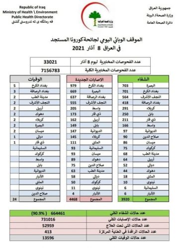 الصحة تسجل 4468 إصابة جديدة بفيروس كورونا